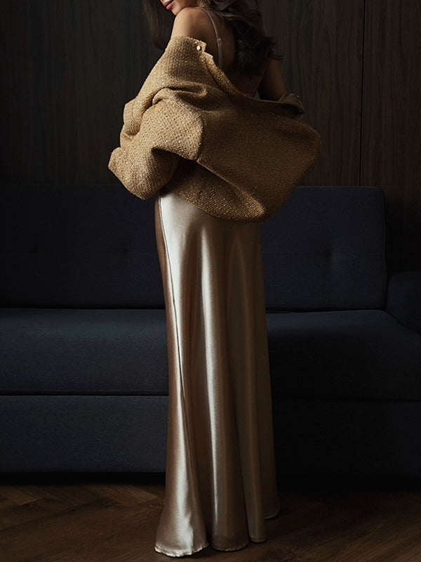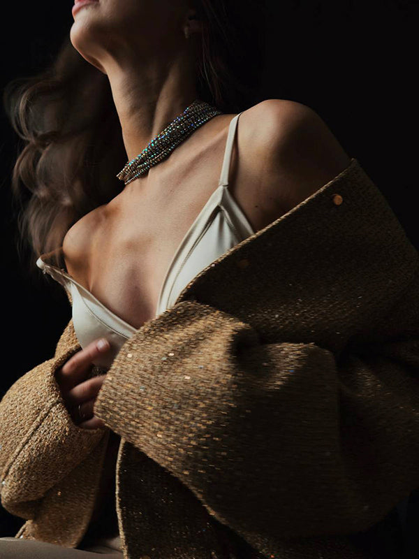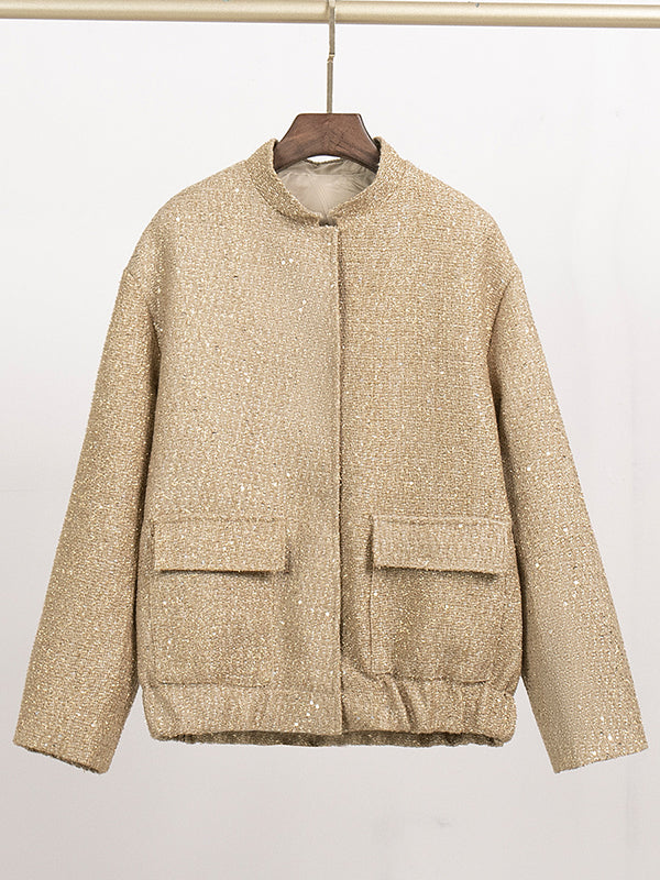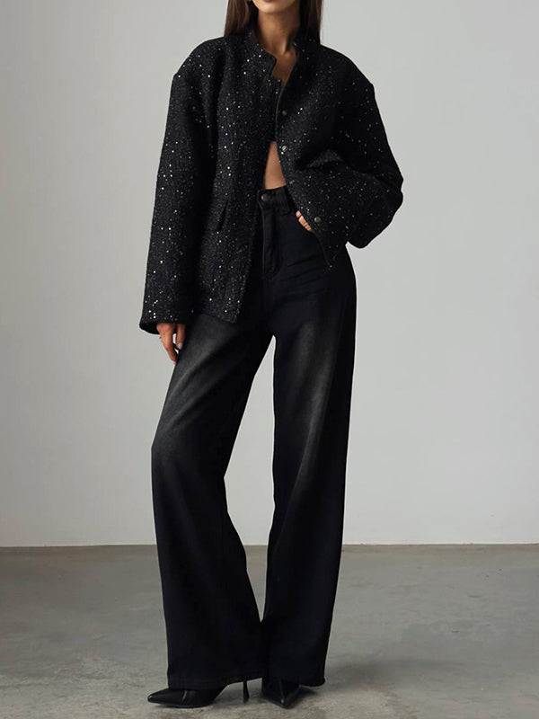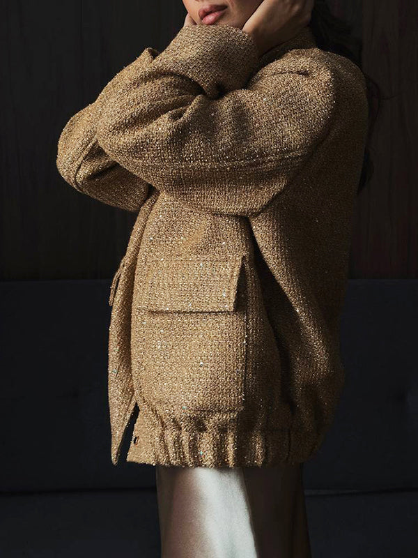 Long Sleeves Loose Buttoned Elastic Pockets Sequined Jackets