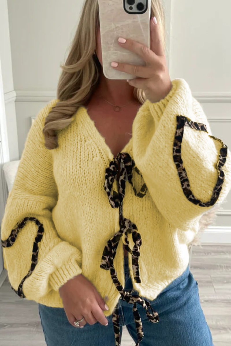 Bliższe dane: Materiał: Poliester, Akryl Styl: swobodny Typ wzoru: Panterka Element: Sznurowanie, Patchwork, Splot Dekolt: dekolt w serek Styl rękawa: Rękaw raglanowy Długość rękawa: Długi rękaw Długość odzieży: Regularna Typ: Patchwork Rozmiar (w calach) Biust Długość Długość rękawa Szerokość ramion S 48 21.7 14.6 29,9 M 49,6 22 15 30.3...