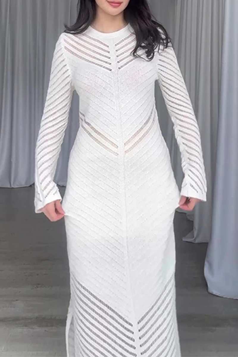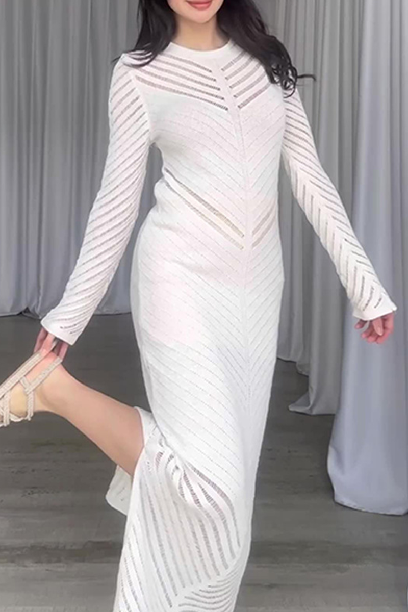 Bliższe dane: Materiał: Poliester Styl: swobodny, codzienny Typ wzoru: Jednolity kolor Element: Wydrążony, Ciągnący się brzeg Dekolt: O Neck Sylwetka: Spódnica owinięta Styl rękawa: Regularny rękaw Długość rękawa: Długi rękaw Typ dopasowania: Regularny Długość odzieży: Długa Typ: Jednolity kolor Rozmiar (w calach) Biust Talia S 34.6 26,8 M 36.2 28.3...
