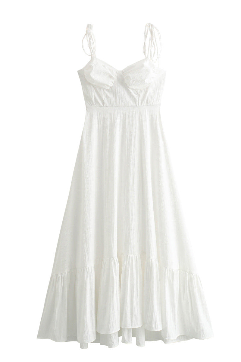 Sukienki codzienne, jednokolorowe, sznurowane, z marszczeniami i falbanką na dole, z dekoltem w serek