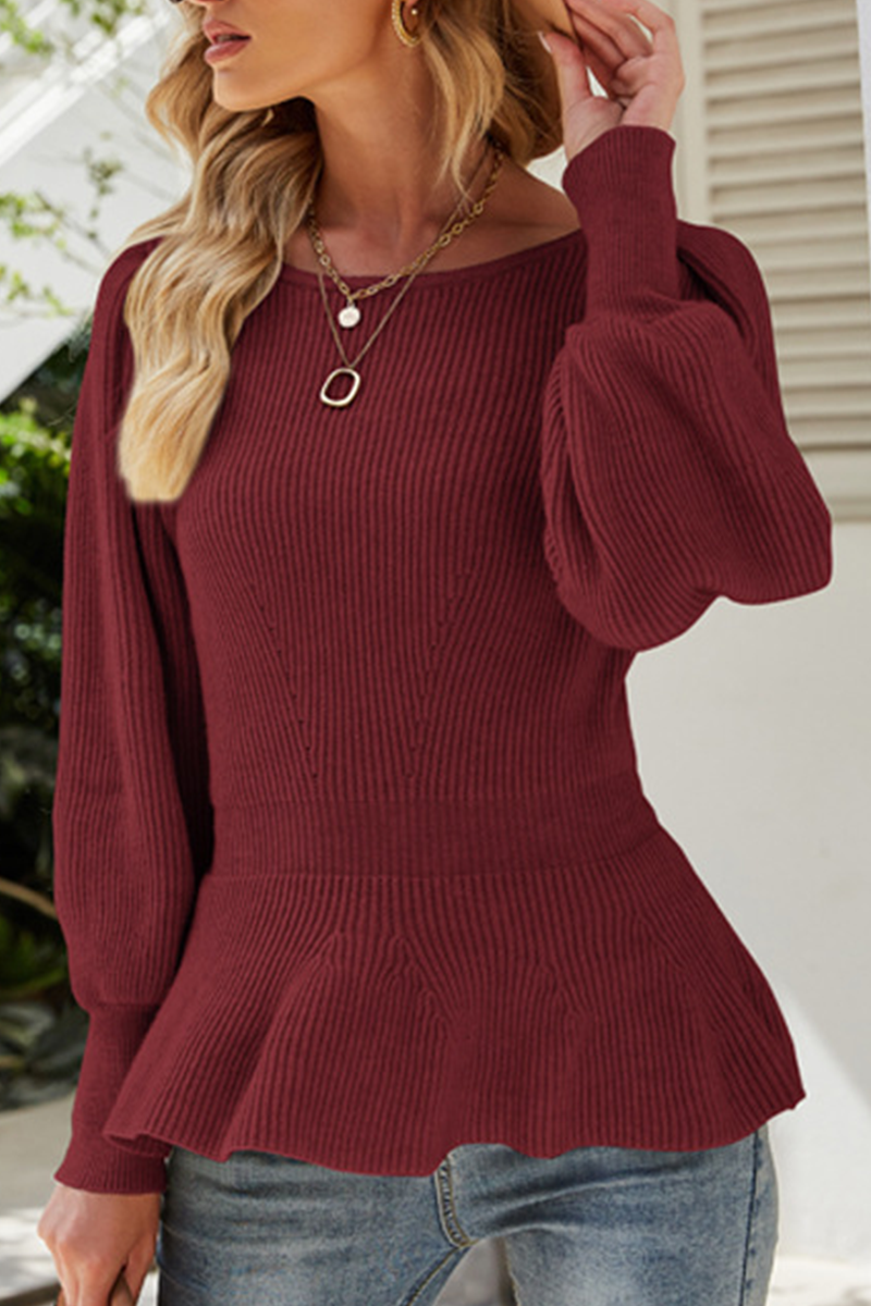 Luźny, elegancki, jednolity sweter z okrągłym dekoltem i łatkami