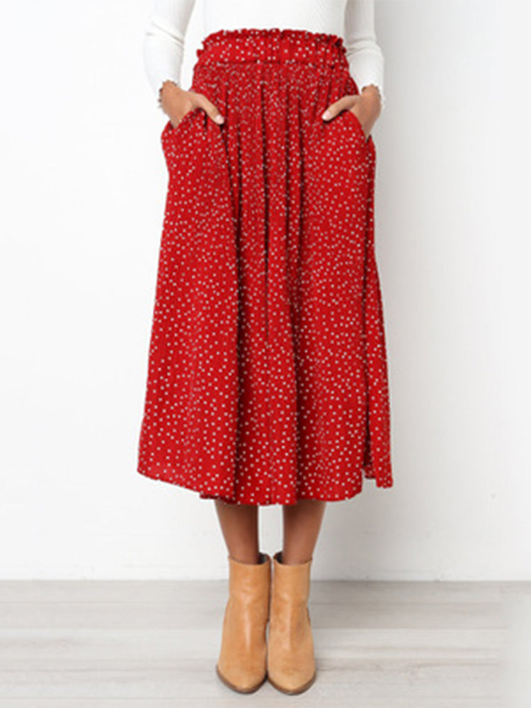 2024 Summer Autumn Casual Chiffon Print Pockets High Waist Pleated Maxi Skirt Womens Long Skirts For Women